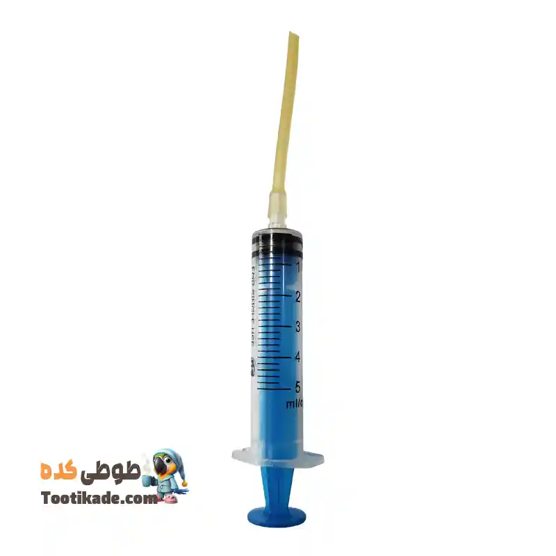 سرنگ غذا کمکی،سرنگ تغذیه پرندگان،سرنگ طوطی سانان،ابزار تغذیه عروس هلندی،تجهیزات نگهداری پرندگان،سرنگ 5 سیسی