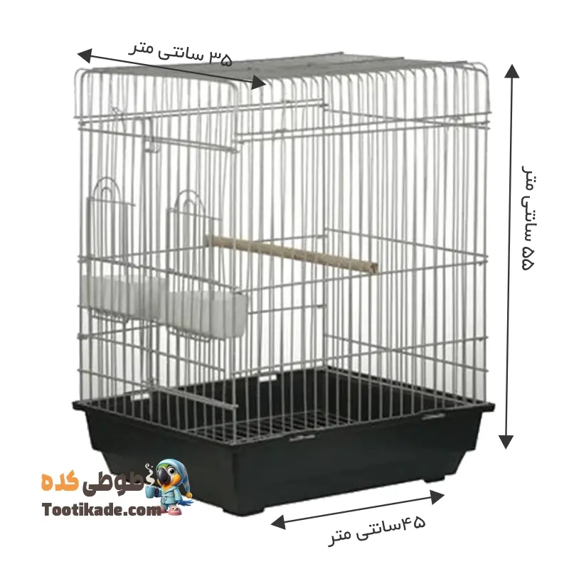 ابعاد استاندارد (طول ۴۵، عرض ۳۵ و ارتفاع ۶۰ سانتیمتر) فضای کافی را برای حرکت و پرواز محدود پرنده فراهم میکند. این فضا به پرنده امکان میدهد تا از بیتحرکی دور بماند و سلامت جسمی و روانی خود را حفظ کند. سینی متحرک تعبیهشده در پایین قفس، روند نظافت را بسیار ساده کرده است. صاحب پرنده میتواند بهراحتی سینی را بیرون بکشد و آن را تمیز کند. همین ویژگی ساده، محیطی تمیز و بهداشتی برای پرنده فراهم میسازد.